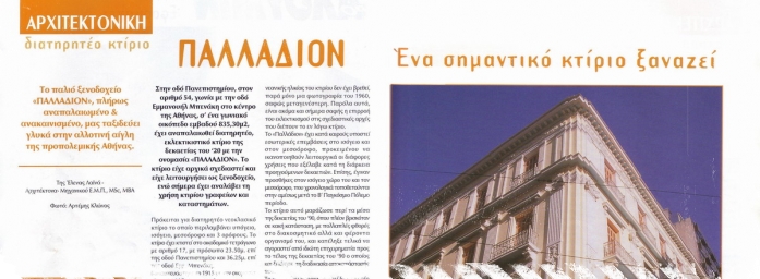 Στην οδό Πανεπιστημίου, στον αριθμό 54, γωνία με την οδό Εμμανουήλ Μπενάκη στο κέντρο της Αθήνας, σ' ένα γωνιακό οικόπεδο εμβαδού 835,30μ2, έχει αναπαλαιωθεί διατηρητέο, εκλεκτικιστικό κτίριο της δεκαετίας του '20 με την ονομασία «ΠΑΛΛΑΔΙΟΝ». Το κτίριο είχε αρχικά σχεδιαστεί και είχε λειτουργήσει ως ξενοδοχείο, ενώ σήμερα έχει αναλάβει τη χρήση κτιρίου γραφείων και καταστημάτων.